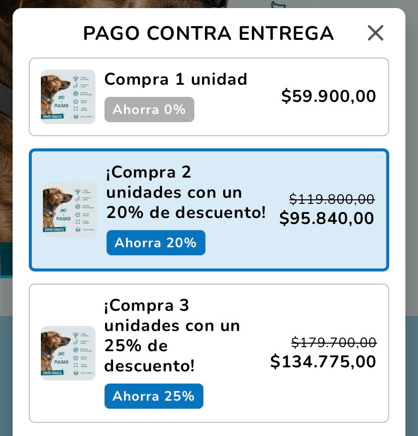 • Pago contra entrega