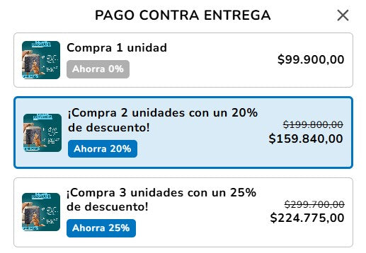 Y si compras 3 unidades te damos el 25% adicional en la compra.